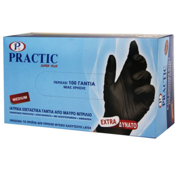Γάντια Νιτριλίου Μαύρα Έξτρα Αντοχής Practic 100τεμ.